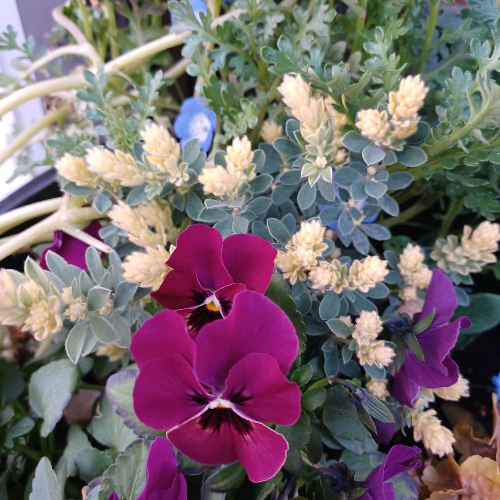 寄せ植えのロータスブリムストーン。ふわふわ感が可愛いです。
