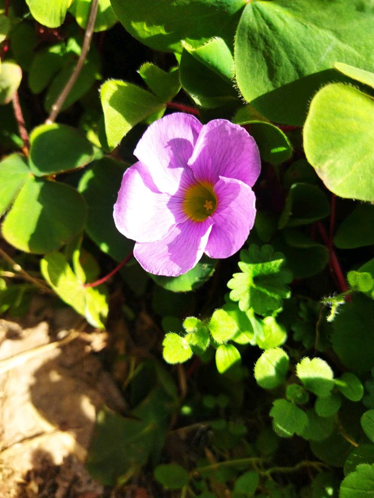 プランターに植えっぱなしのオキザリスが、一輪だけ開花してました。