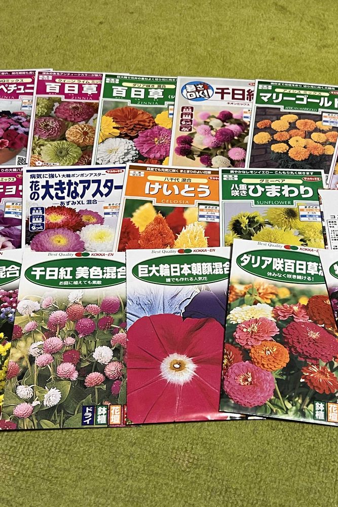 購入したタネの他に落花生🥜やオモチャカボチャ🎃など自家採種したタネもたくさんあります。