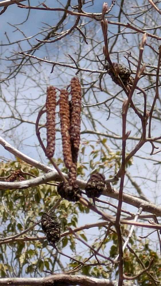 仲間であるヤシャブシは花柄がなくて斜上するのが大きな違いだ(ง˙∇˙)ว