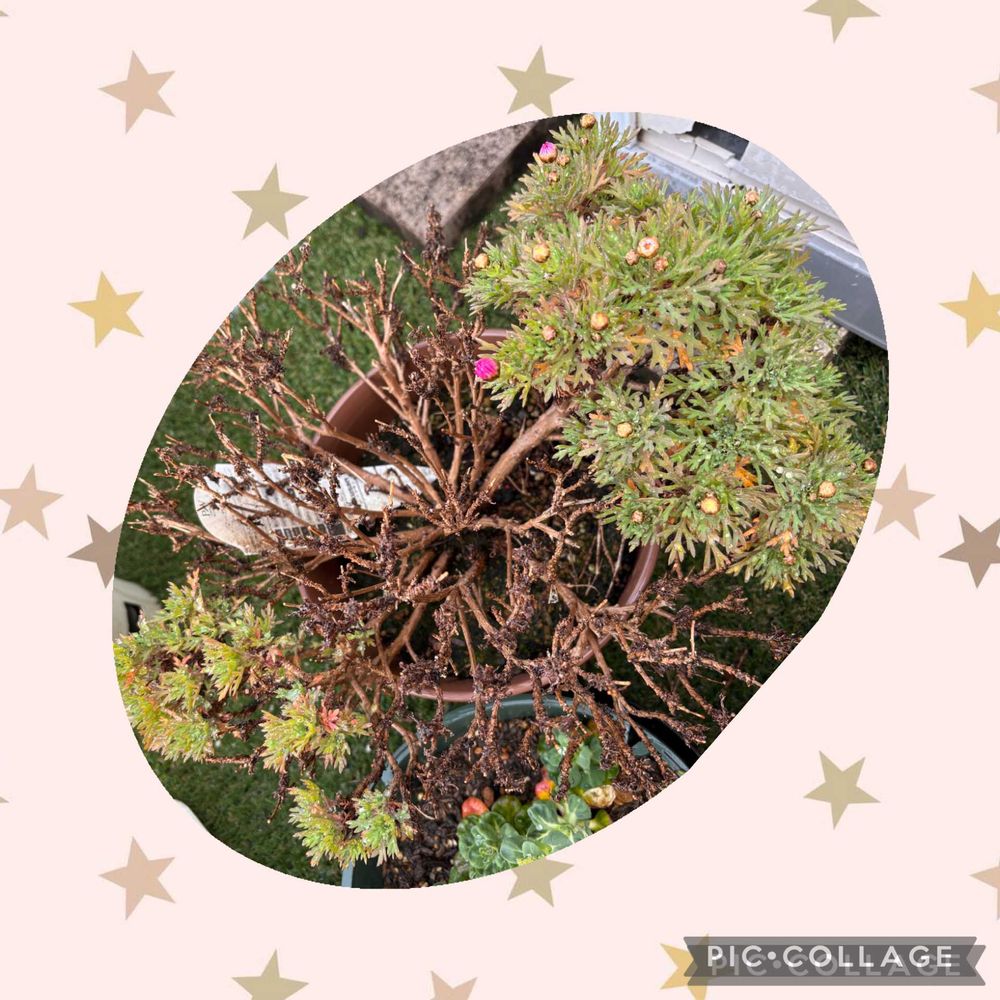 うちにも、こんな感じの子います。いつも花の色を確認したら、さし芽用にカットして、さし芽で次に繋いでいます。下の方が木質化してしまって、復活できないので😅
