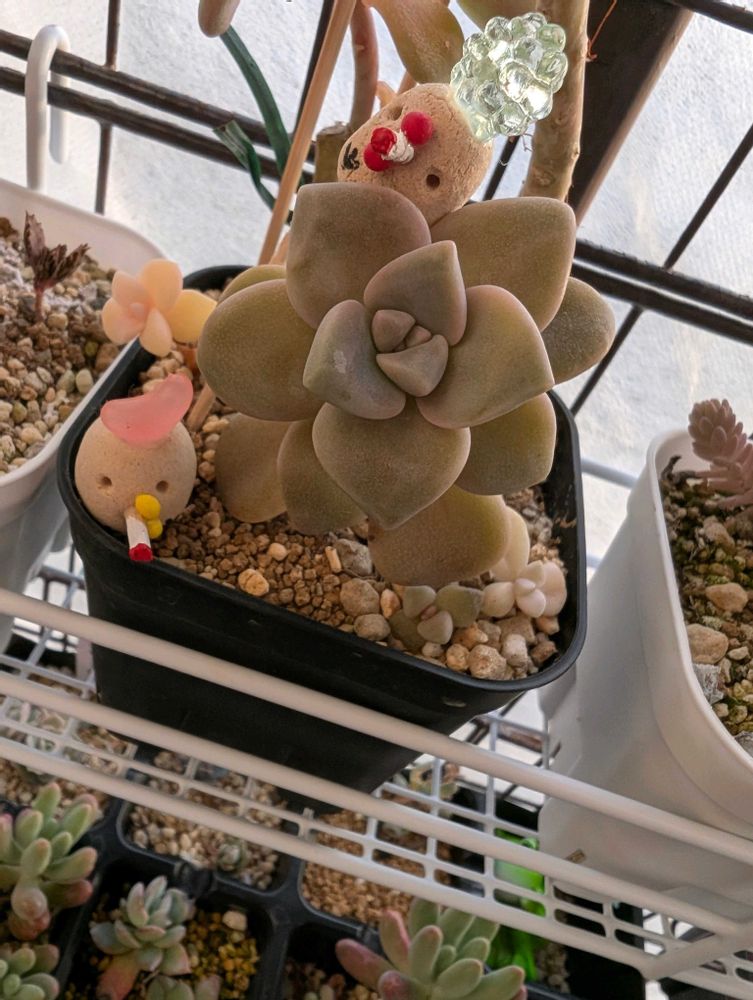 2025年4月にネットでたにたのさんの苗を購入した時におまけでついてきた名無しのエケベリアが面白く育っているので、成長記録を作りました。 この子の名前ご存知でしたら、ぜひ教えてください🙏