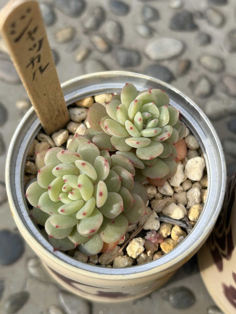 2025年4月にネットでたにたのさんの苗を購入した時におまけでついてきた名無しのエケベリアが面白く育っているので、成長記録を作りました。 この子の名前ご存知でしたら、ぜひ教えてください🙏