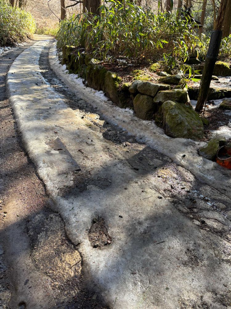 日かげになりがちな場所の轍とアイスバーン⚠️