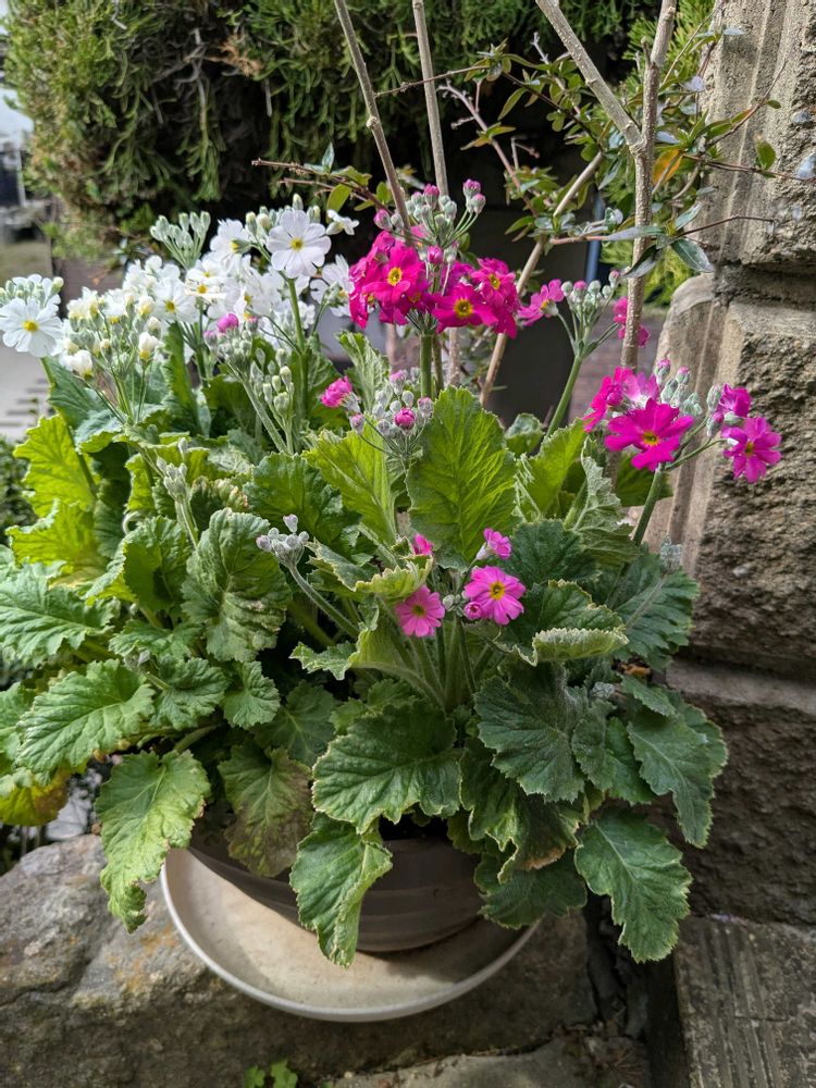 寄せ植えサクラソウも咲き始めているね✌️😊