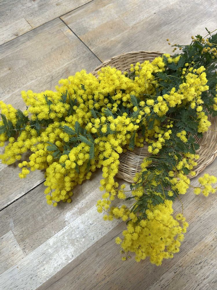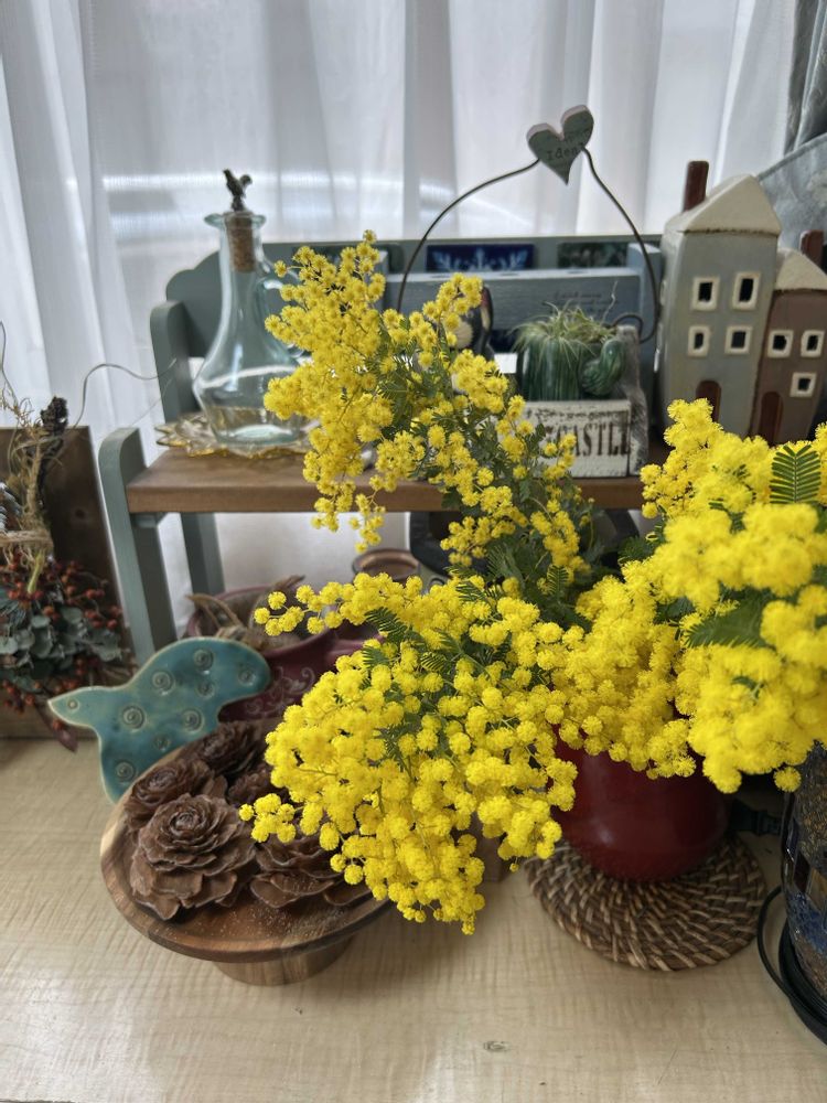 朝一で健康診断に行き帰りいつもの花屋さんでミモザに出会い購入して来ました💛💛💛💛お部屋が春に😍