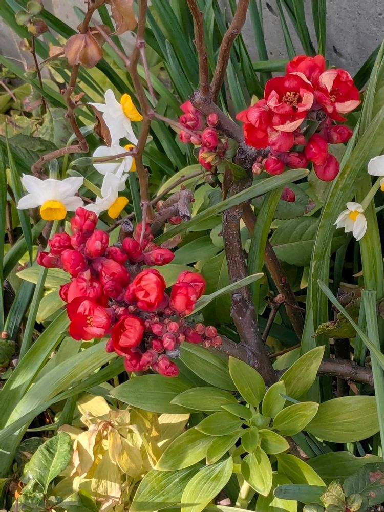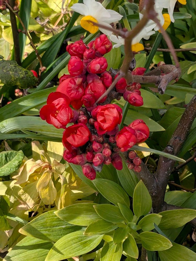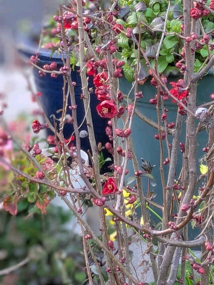 1️⃣2️⃣お出かけ先のバス停近くで咲いていた鮮やかな❤️の木瓜