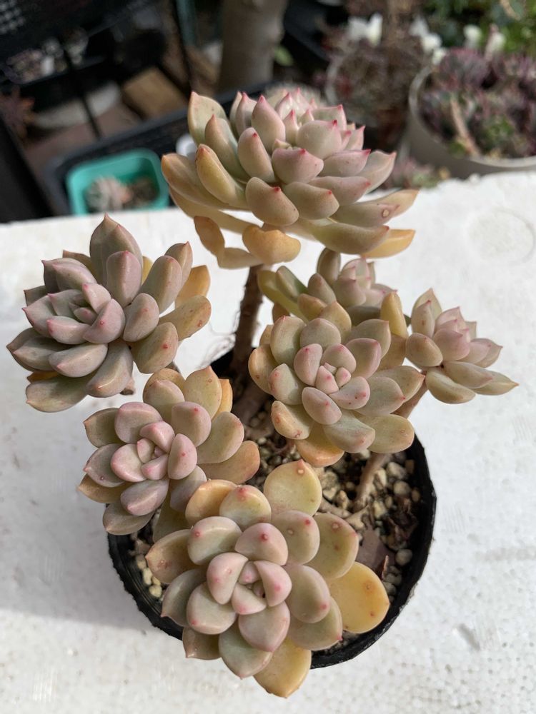 2025年4月にネットでたにたのさんの苗を購入した時におまけでついてきた名無しのエケベリアが面白く育っているので、成長記録を作りました。 この子の名前ご存知でしたら、ぜひ教えてください🙏