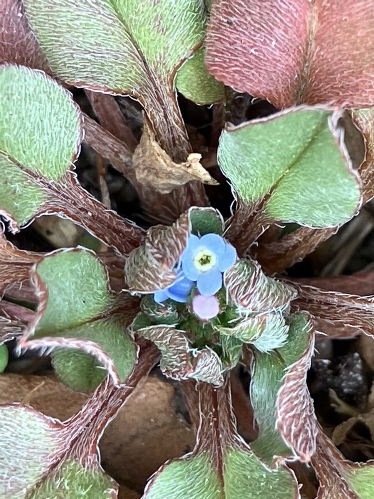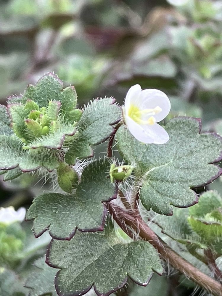 オオイヌノフグリの側、ロゼットの真ん中に小さなキュウリグサ