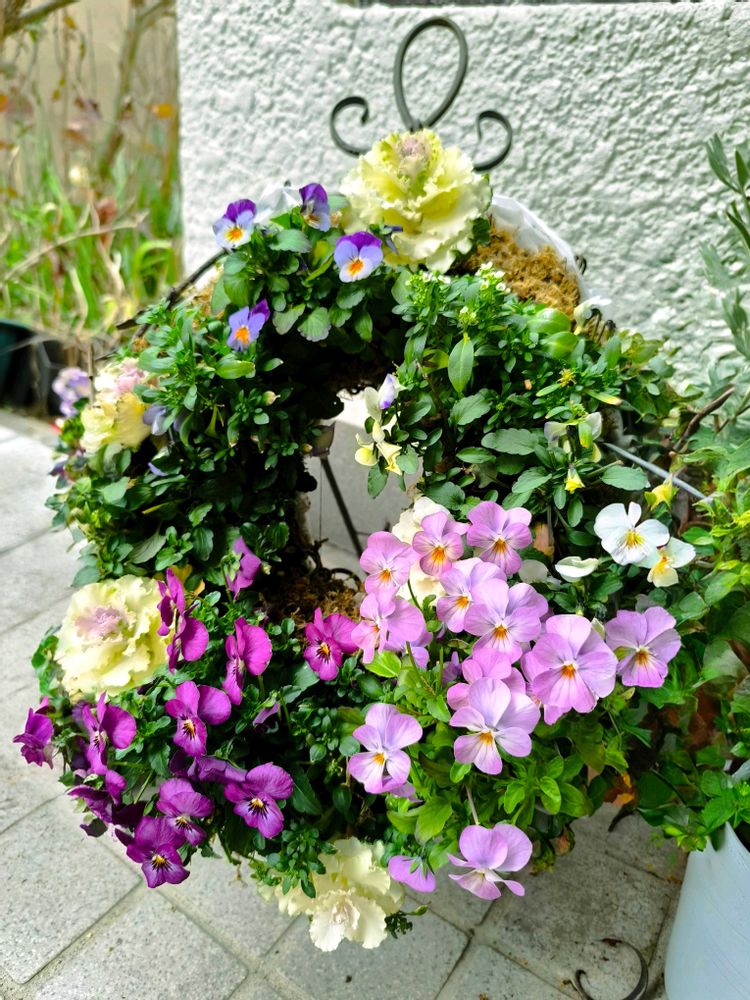 リースの上のビオラは土が少なくて成長が遅いの😅