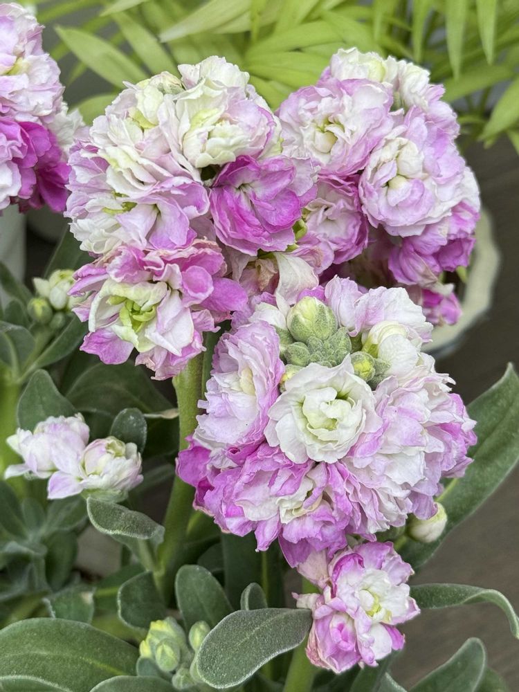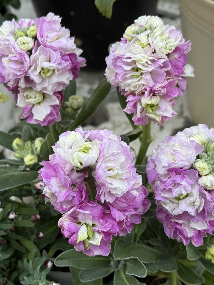 ストックってあまり好みではなかったのですが、この八重咲き、中心が白くてピンクのグラデーションが気に入りました💗