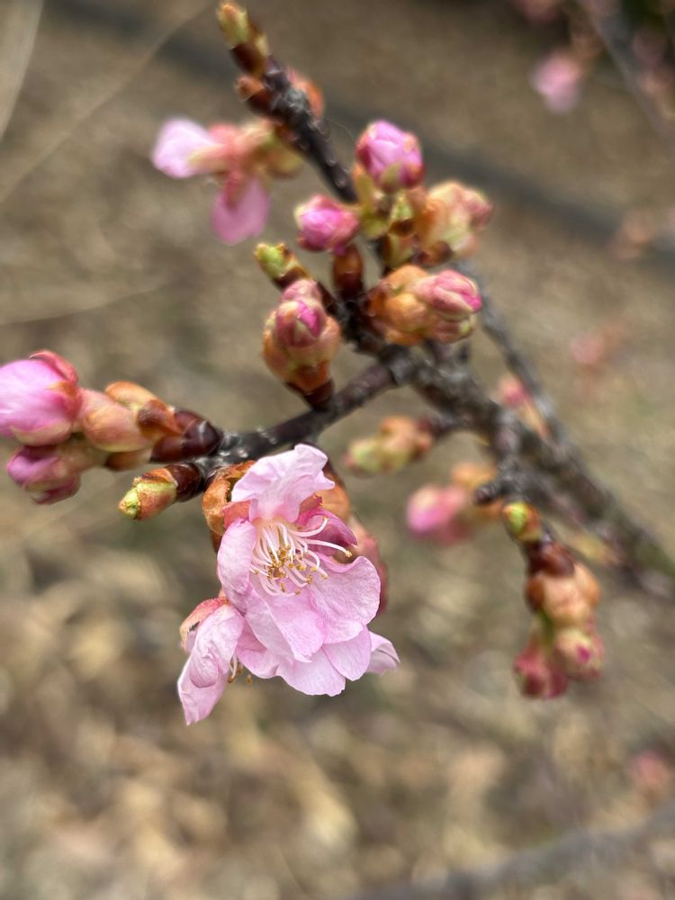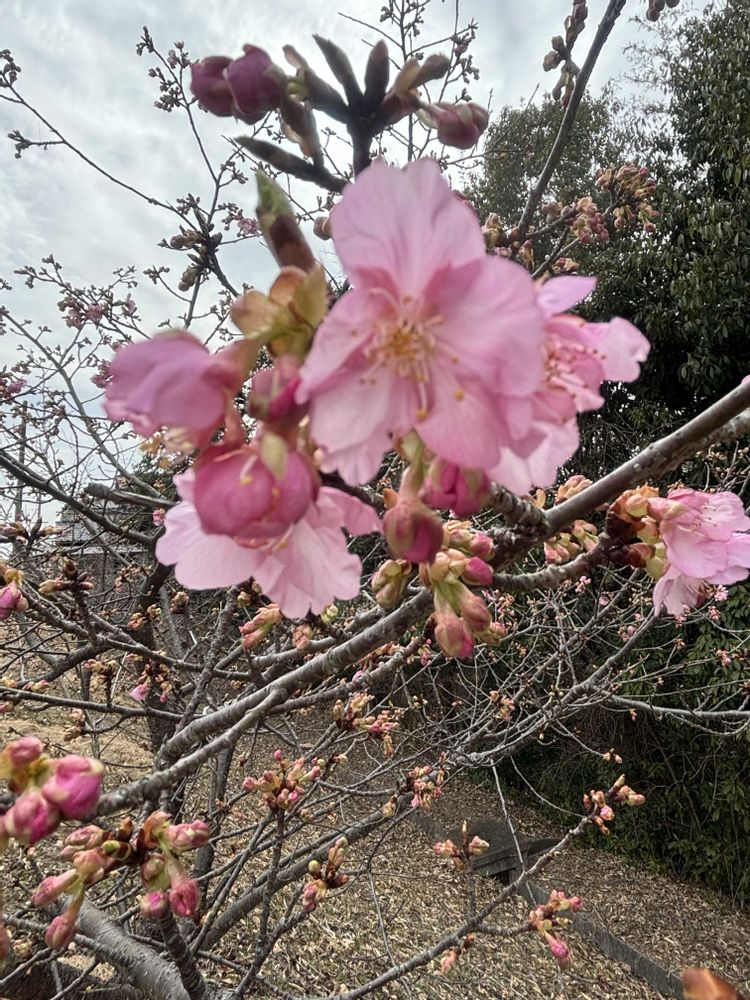 ①②暖かいからね、河津桜咲き始めました