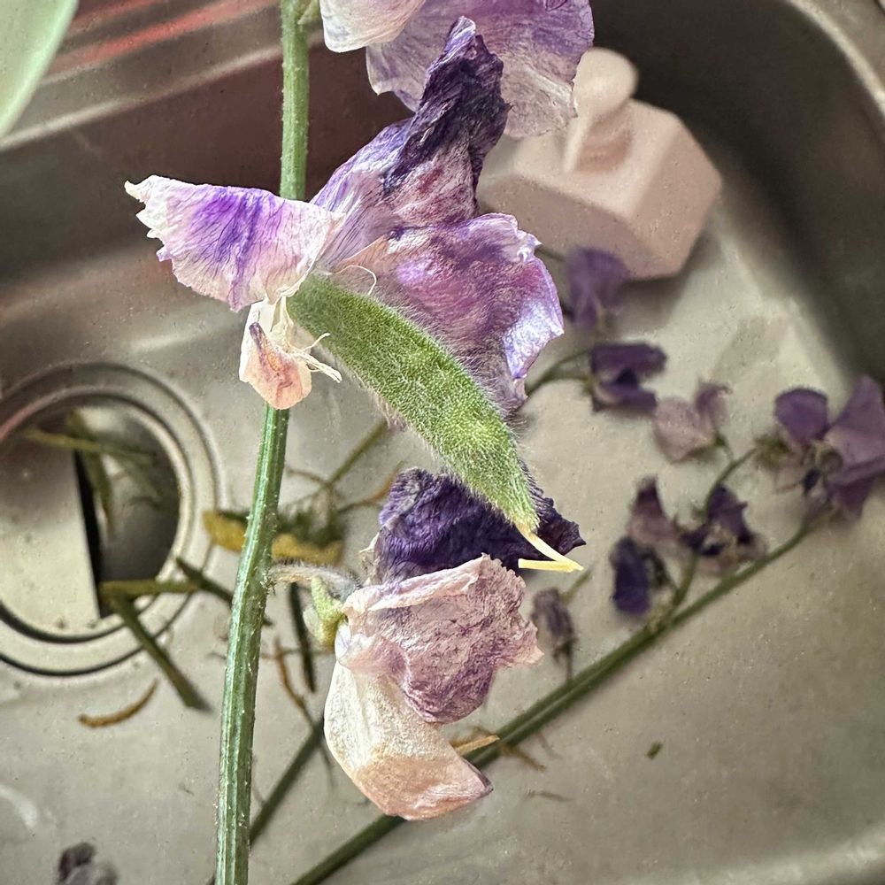 旦那さんがスイートピーの切花くれて飾ってたんだけど豆生えてきた😛