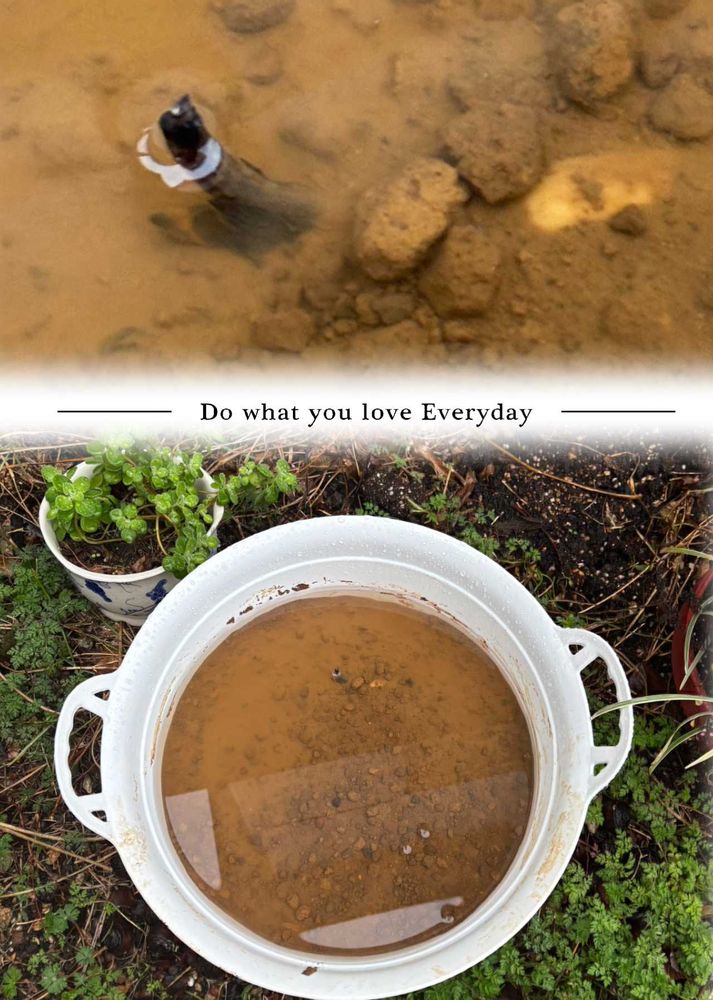 5頁 コップで水を掻き出せ、との指導でしたが、思わずタライの取ってをとり、傾けて、雨水を排除❣️