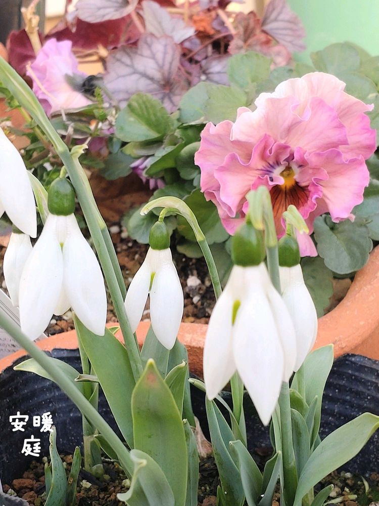 スノードロップは蕾のほうが好きなのに、パーパーに開いちゃったわ😂