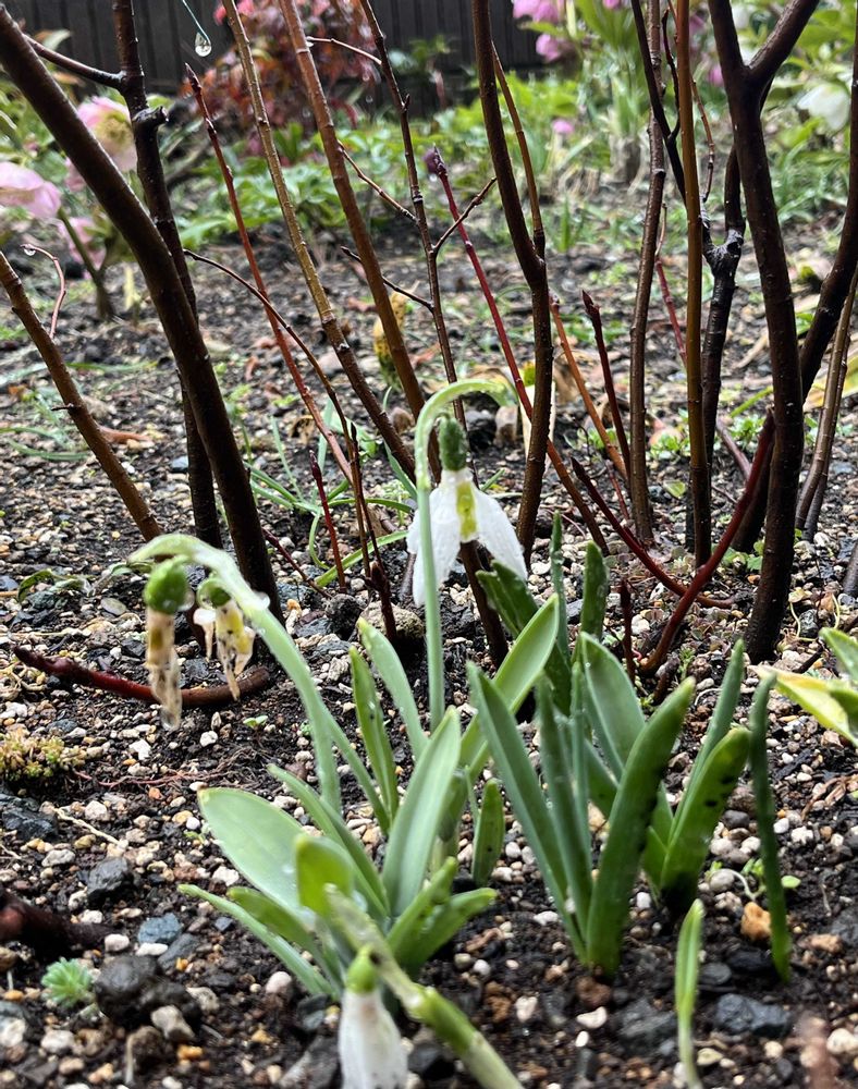 ①② 雨が降っています☔️今朝の庭のスノードロップ