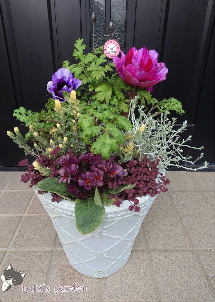 往年のハリウッド女優のようにゴージャスで優雅な雰囲気を纏うみどりさん🐱に相応しい魅惑的なアネモネ『ミストラル・ティグレワイン』とプリムラ・ジュリアン『アンティーク・ワイン』を合わせてみました🍷✨