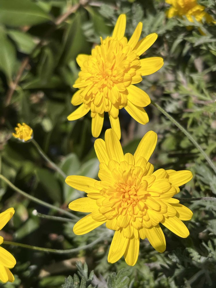 私もユリオプスデージーの八重咲きは珍しいと思いながら見ていました。