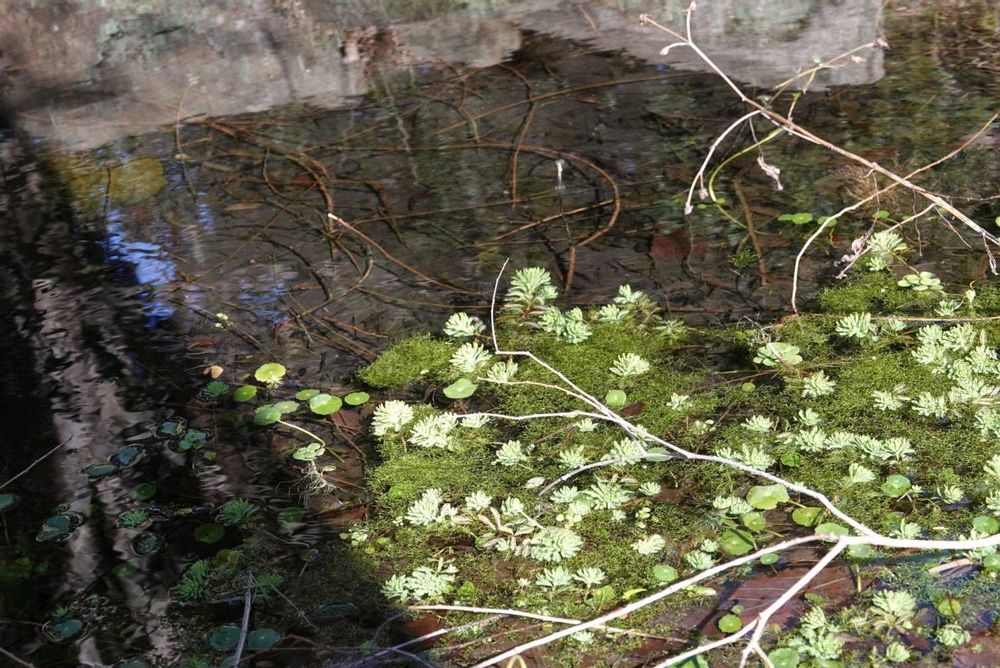 フサモ(在来種)は沈水植物、水上に立ち上がるのはオオフサモかな、と思いましたが、水に入り採集して調べてはいません。違っていたら教えて下さい。