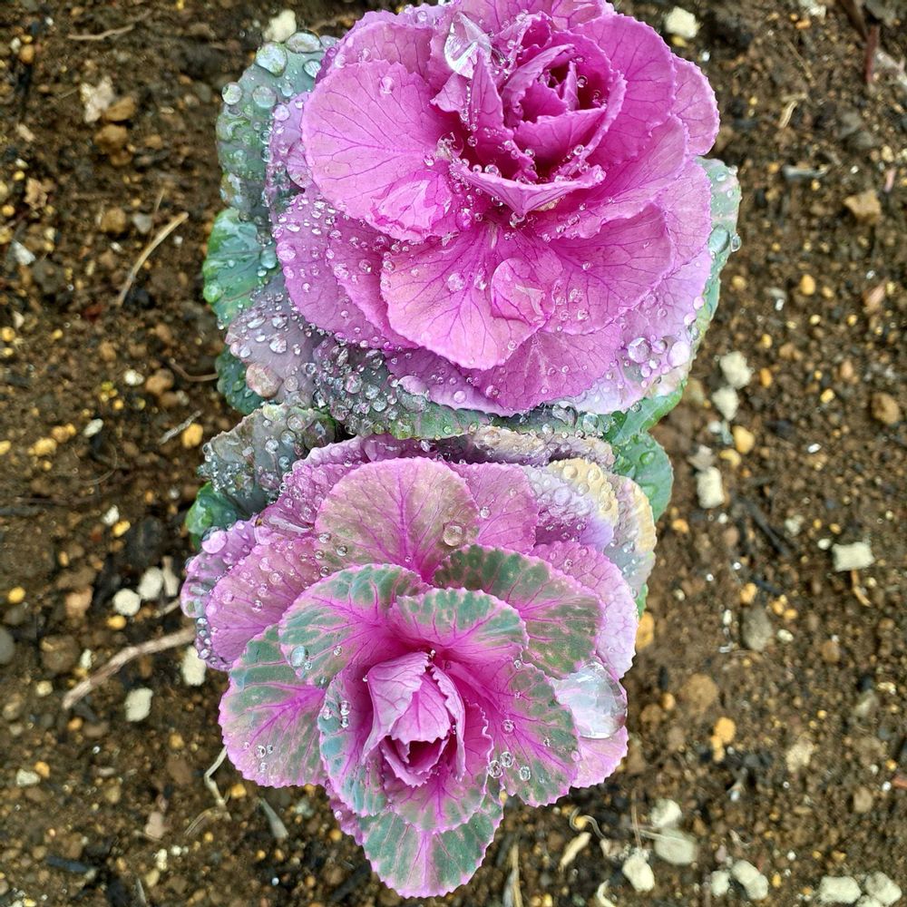 ④雨粒と葉牡丹💞雨粒まとって綺麗✨✨