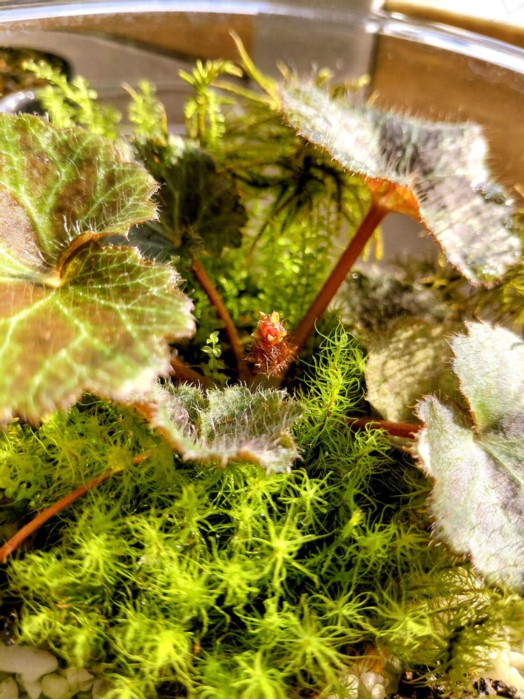 苔テラリウムのユキノシタから何やら小さなコ🌱 ͛.*