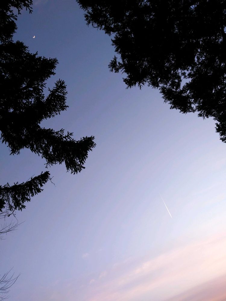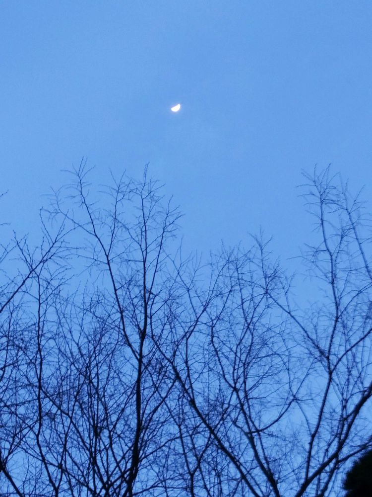 葉は無いですがケヤキの木?越しの上弦🌓を迎える前のお月様🌙✨