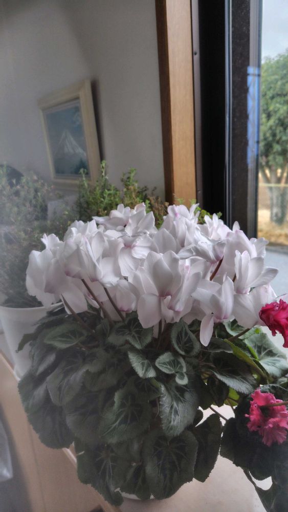 一年目の白のシクラメンの方が立派に咲いてるね😉