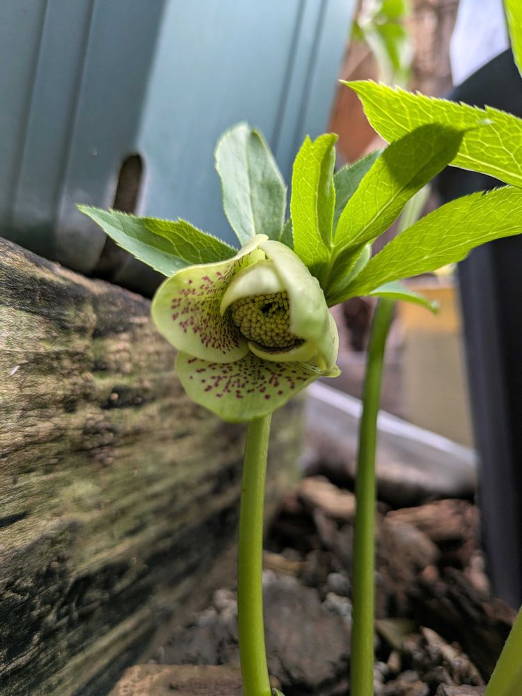我が家で初めてこぼれ種からのクリスマスローズ🌱が咲きました!