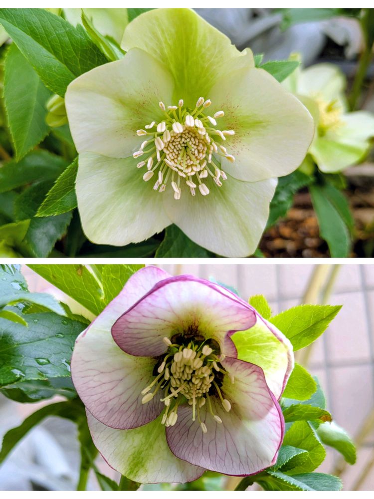 ちなみに近くで咲いているのは5枚目の2種類のクリスマスローズです😅