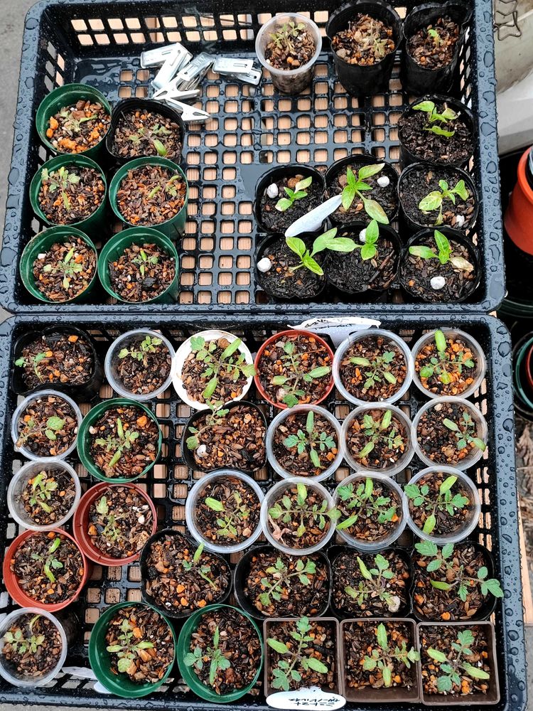 種からミニトマト、全て独立ポット上げ終わりました。まぁまぁ痛みがあったので、あんまりだなーっていう1割くらいは捨てて一軍、二軍、保険って感じになりましたw