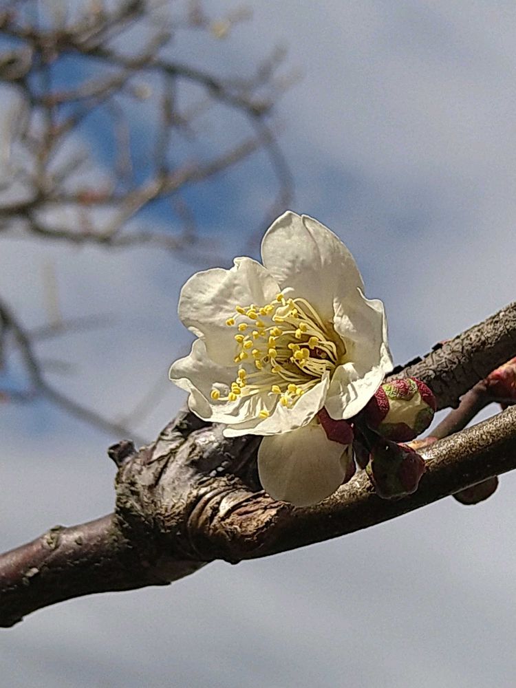 ③ 遅咲きの梅一輪素敵です🤍💮
