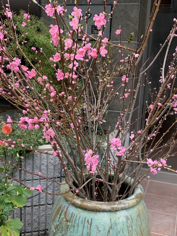 桃の花🩷が大きな素敵な壺に