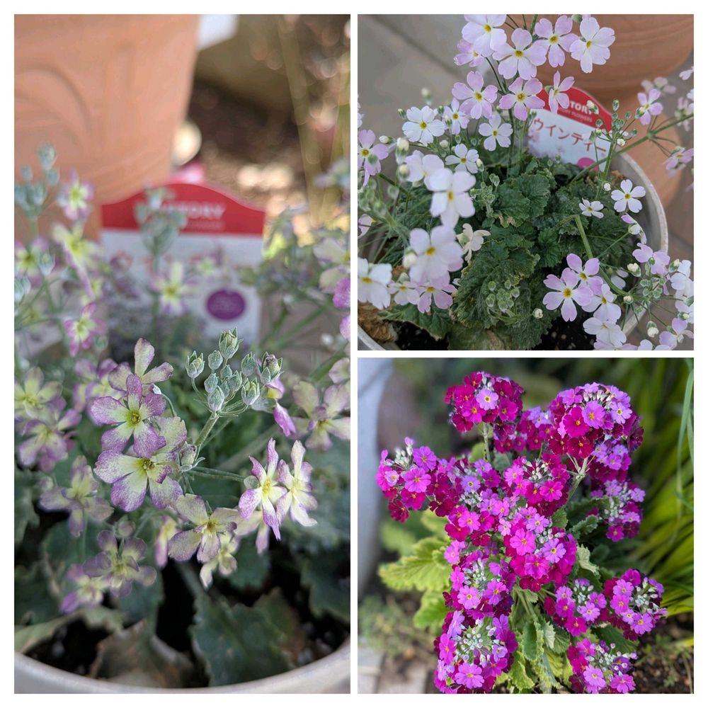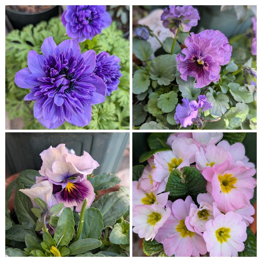 1, 2枚目は、気に入ってお一人様植えをしている春の花たちです😊