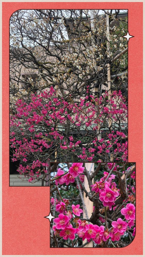 赤は見頃白梅は時すでにお遅かりし遠目にはいい感じです