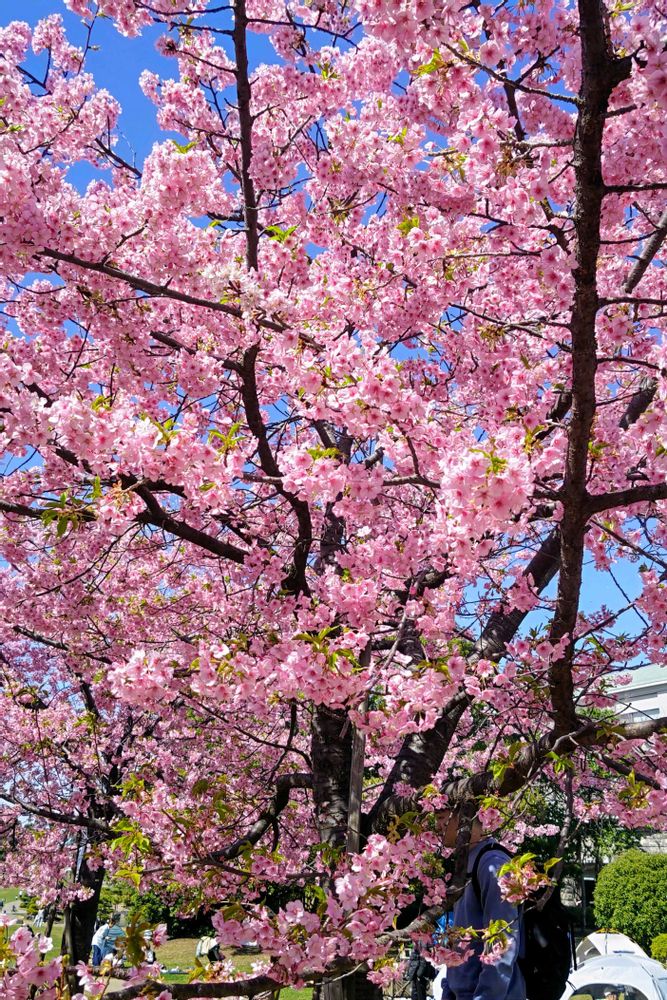 河津桜、お散歩ちゃんを楽しめる位置に満開でした。