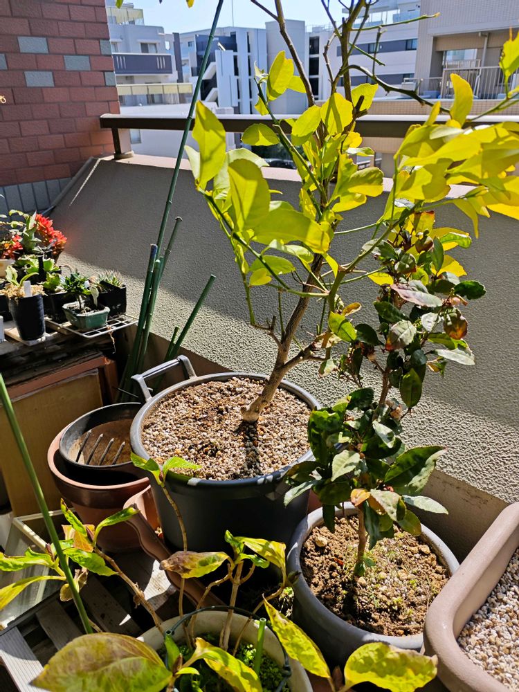 私の所の挿し木から戴いた🍋も葉が黄色気味