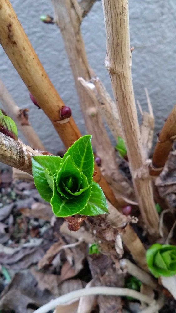 ③ガクアジサイの新芽