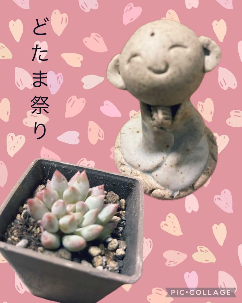 雲仙花子さんに頂いたお地蔵さんと多肉さんのどたま💕猫🐱ちゃんと多肉ちゃんのどたまで参加👋