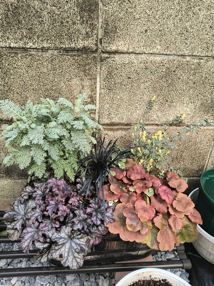 実は左奥は当時コリウスだったのですが冬越し出来ないので脱落しシルバーレースに差し替えました。