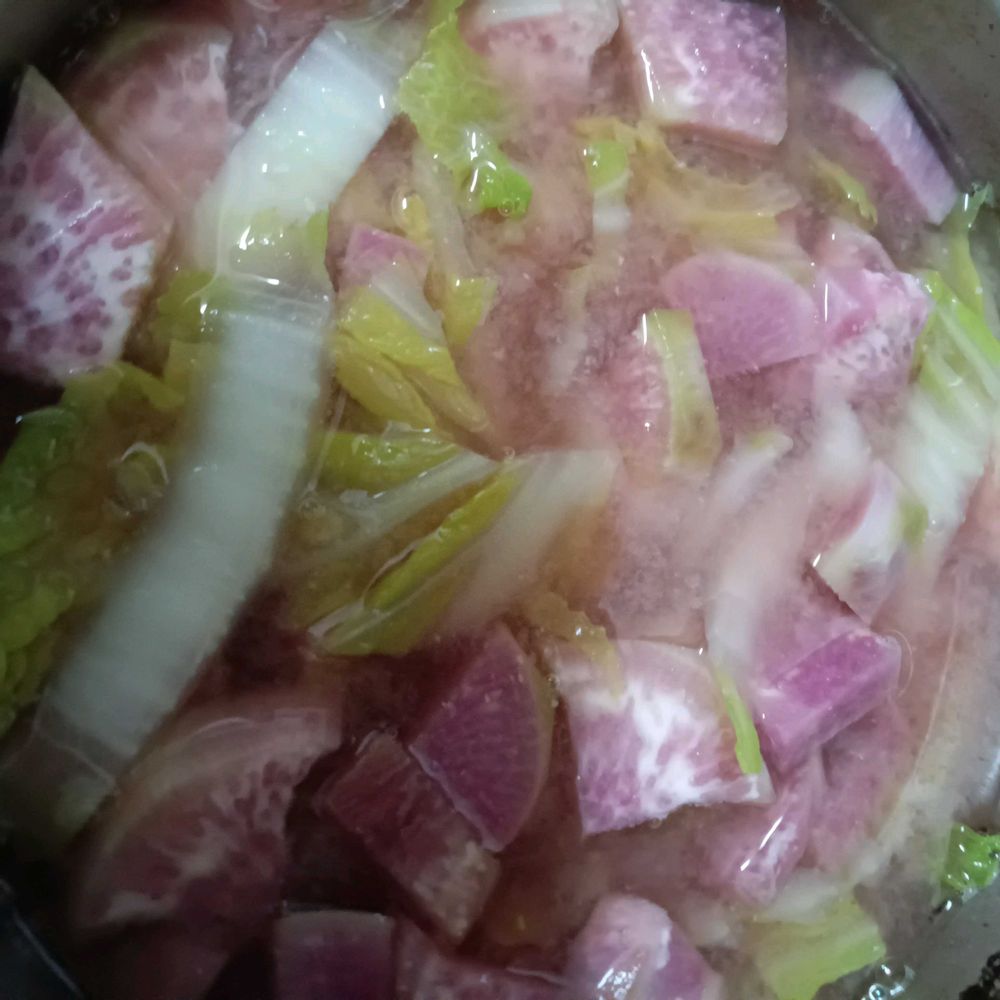 5️⃣コウシンダイコンと白菜のお味噌の色がけっこう蛍光ピンクになる問題😅