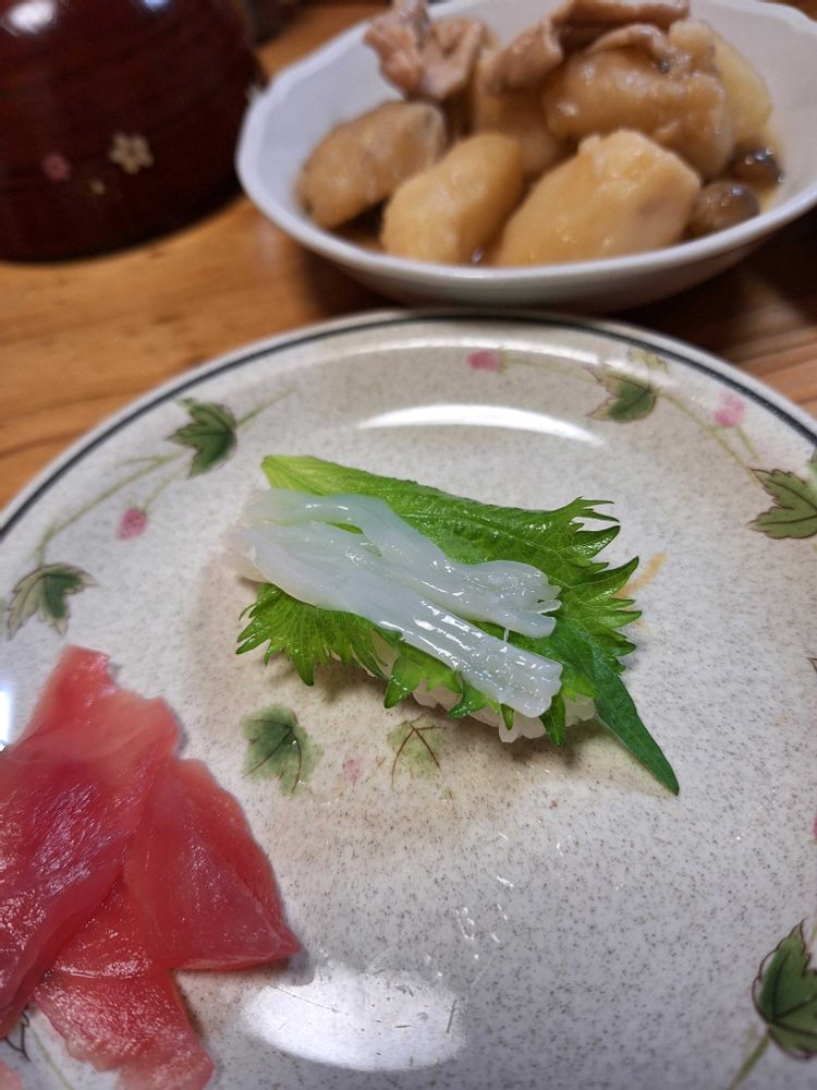 孫👦小4は自分で握ったお寿司とママの豚丼を勢い良く食べててママに「ママの豚丼全部食べないでよね❗️」なんて言われていました(笑)