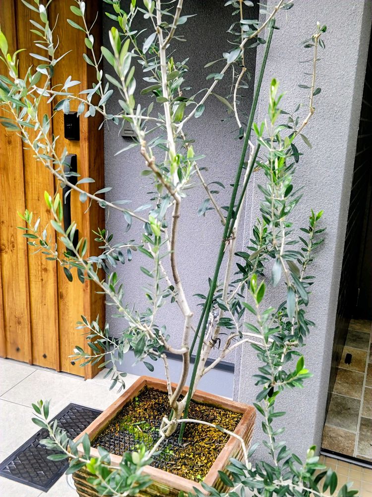 4枚め、今日のお花🏷️のオリーブ。お店屋さんの店先です。