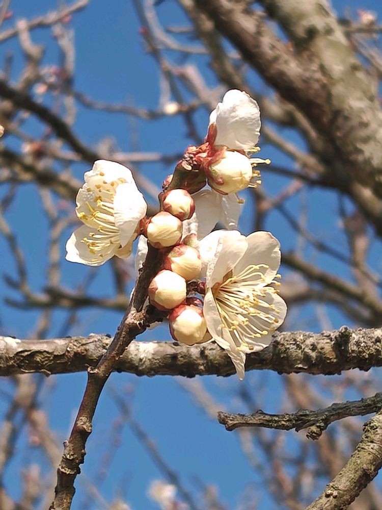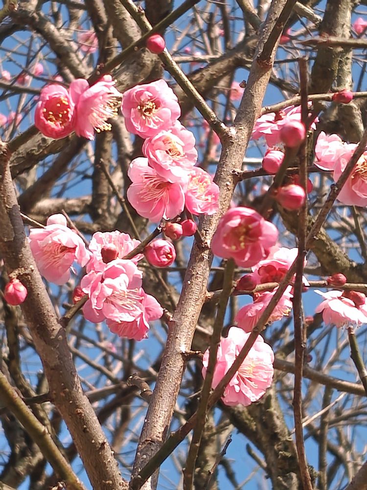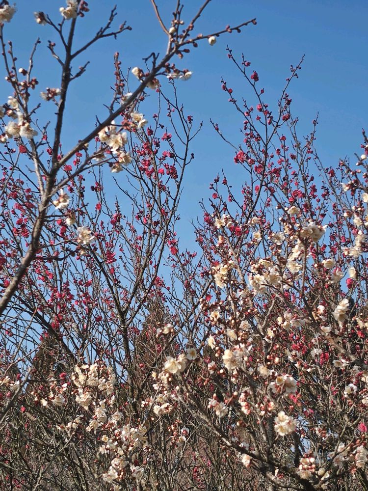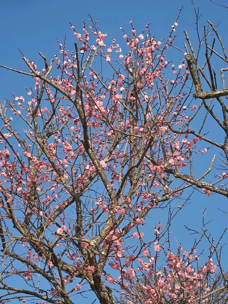 青空に咲き誇る梅の花🌼