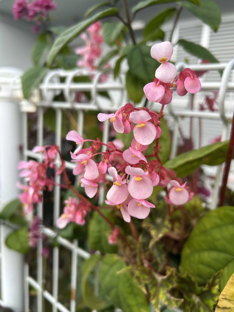 ハツユキカズラの側から、ピンクのお花のベゴニア🌸