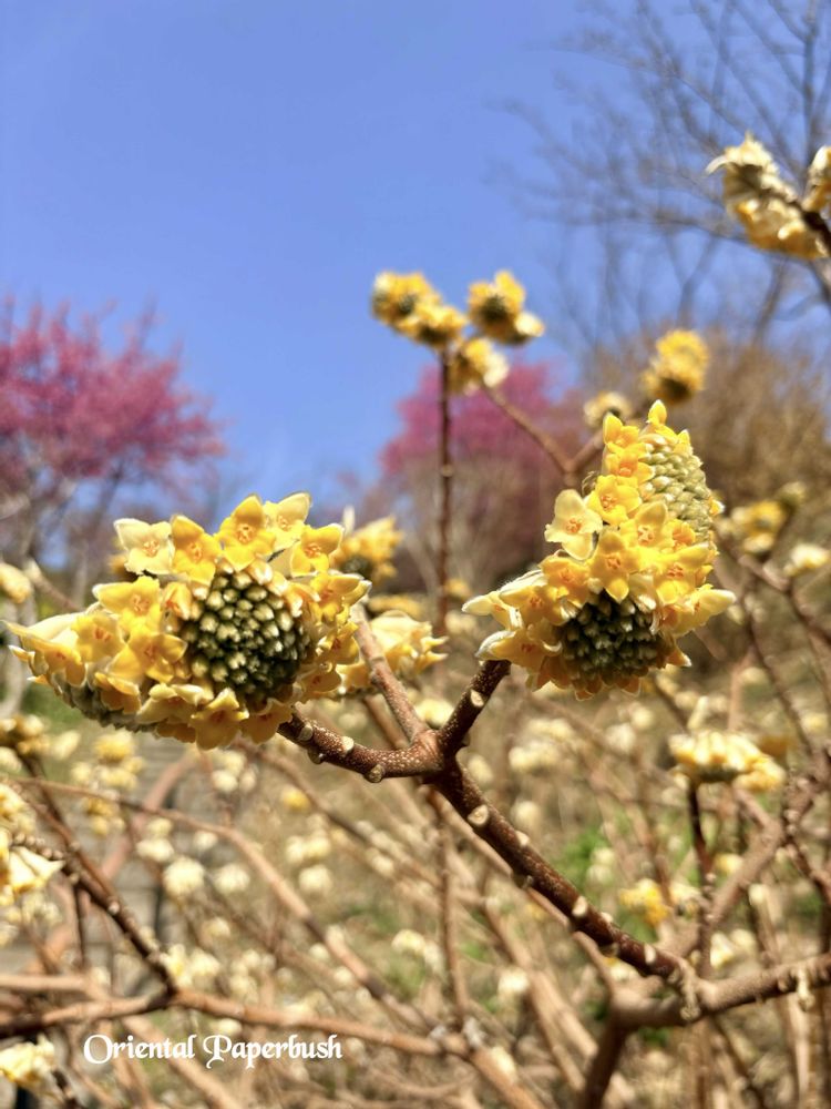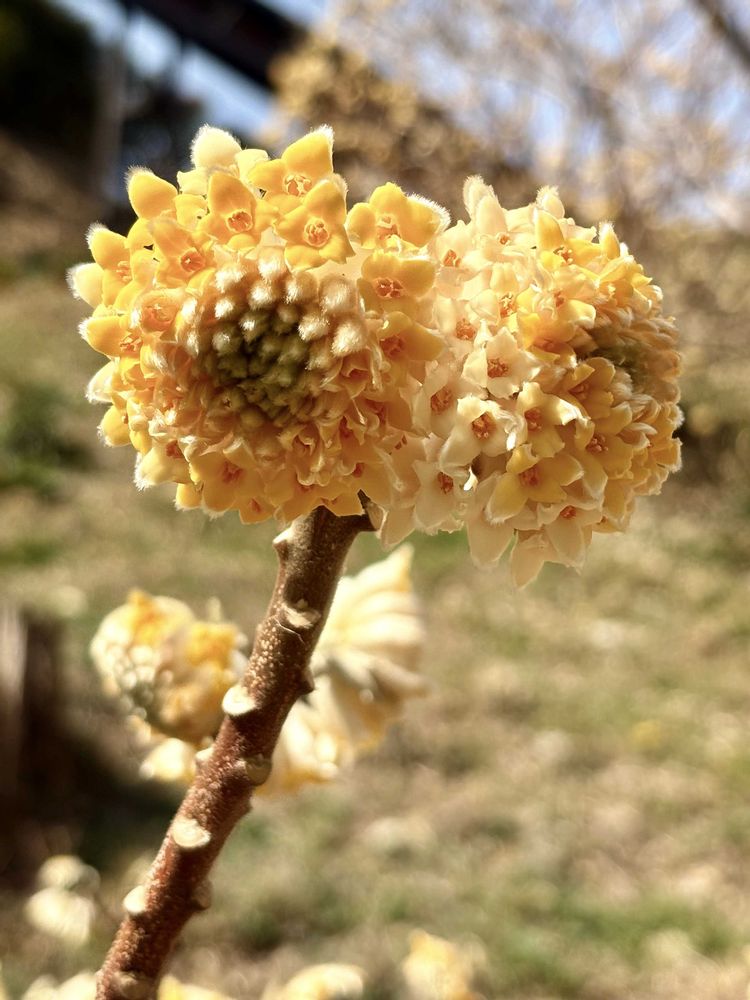 ミツマタの中でも特に花序(花の集まり)が大きく、見応えがあります在来種に比べて花が2〜3倍ほど大きくボリュームがあるのが最大の特徴。