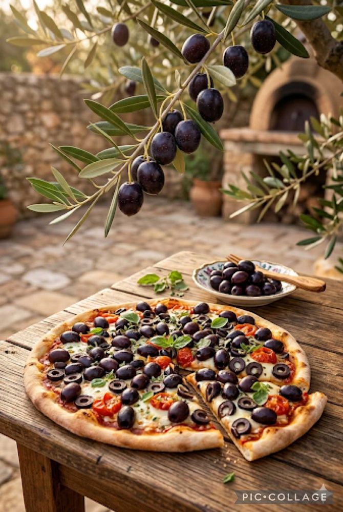 ブラックオリーブ🫒沢山のピザ🍕美味しそうですね。