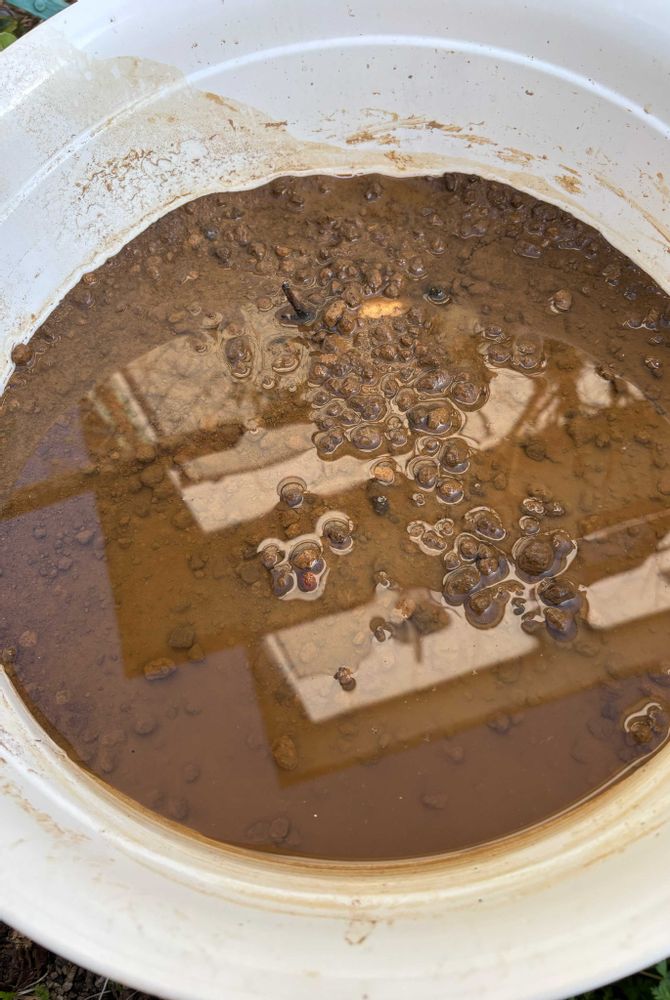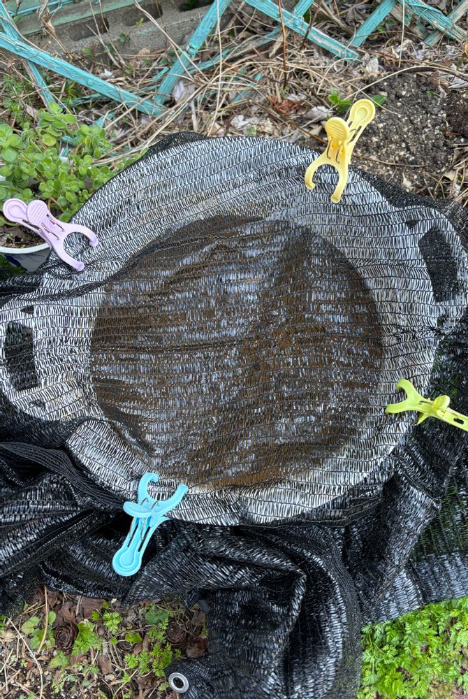 今日夕方、張ってる水を出し、相変わらず傾斜をつけて、雨避けのカバー(冷蔵庫のトレイ)を、換気できるようにかぶせるつもりです。