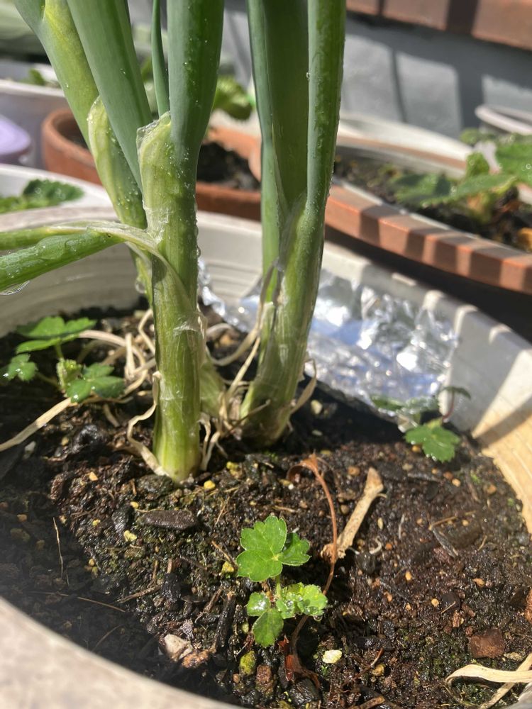 我が家のネギは根っこ(3cm位)を1月末くらいに植えたのですが…1週間ほど前からニョキニョキと15cmほどに急に伸びました👀