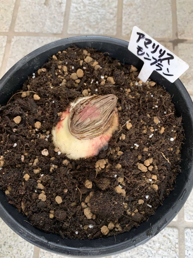 四枚目、アマリリスモンブラン、大きな球根。お花咲くといいなぁ。