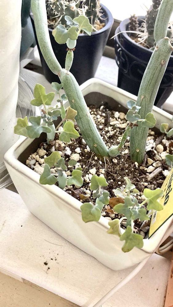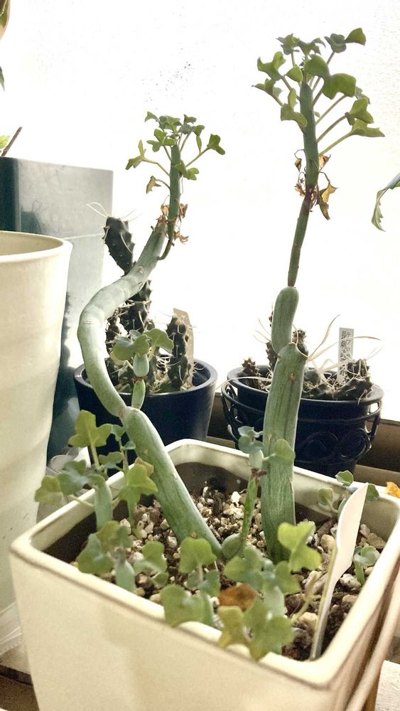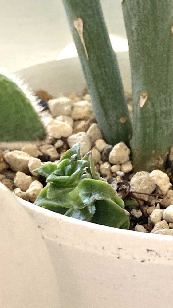 寒さでチリチリになってましたが新葉が出て来た🌱足元に違う多肉さんが居ました😳